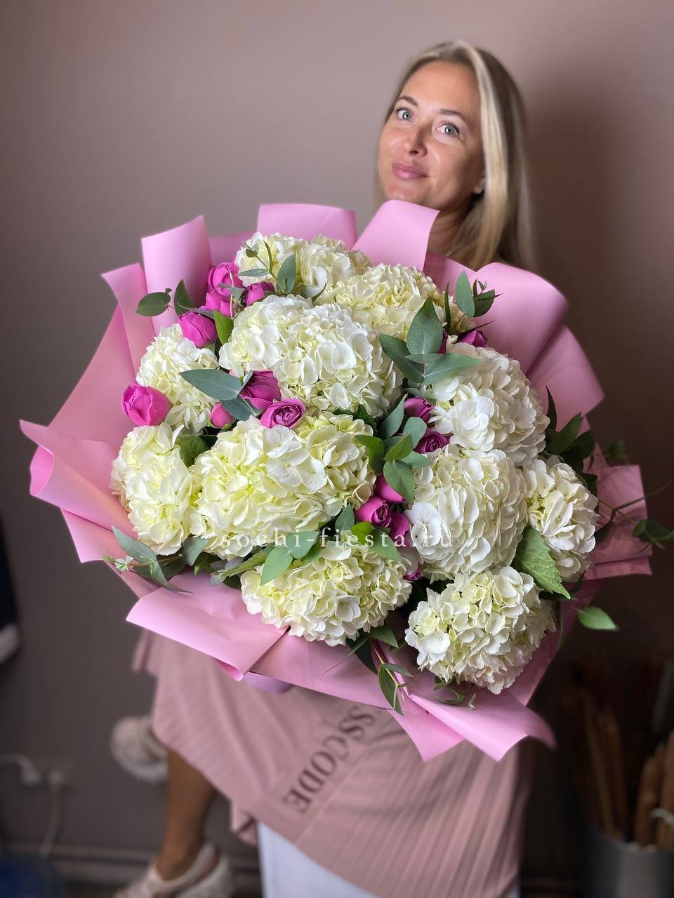Для заказа товара "Букет гортензий "Крем"" с доставкой в Подольске нажмите в корзину