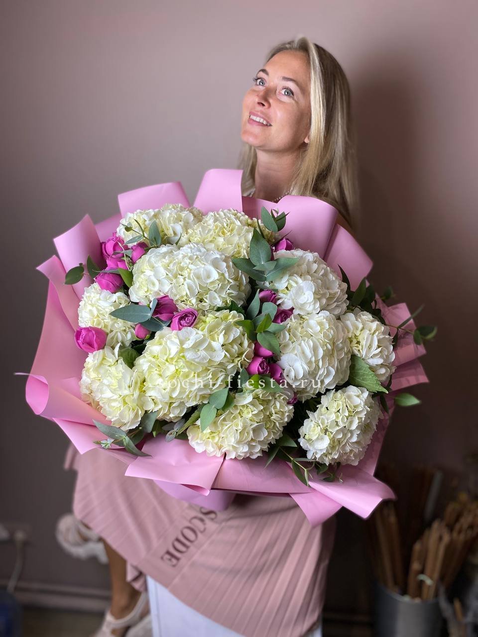 гортензия - 3 шт., лента, дизайнерская упаковка.