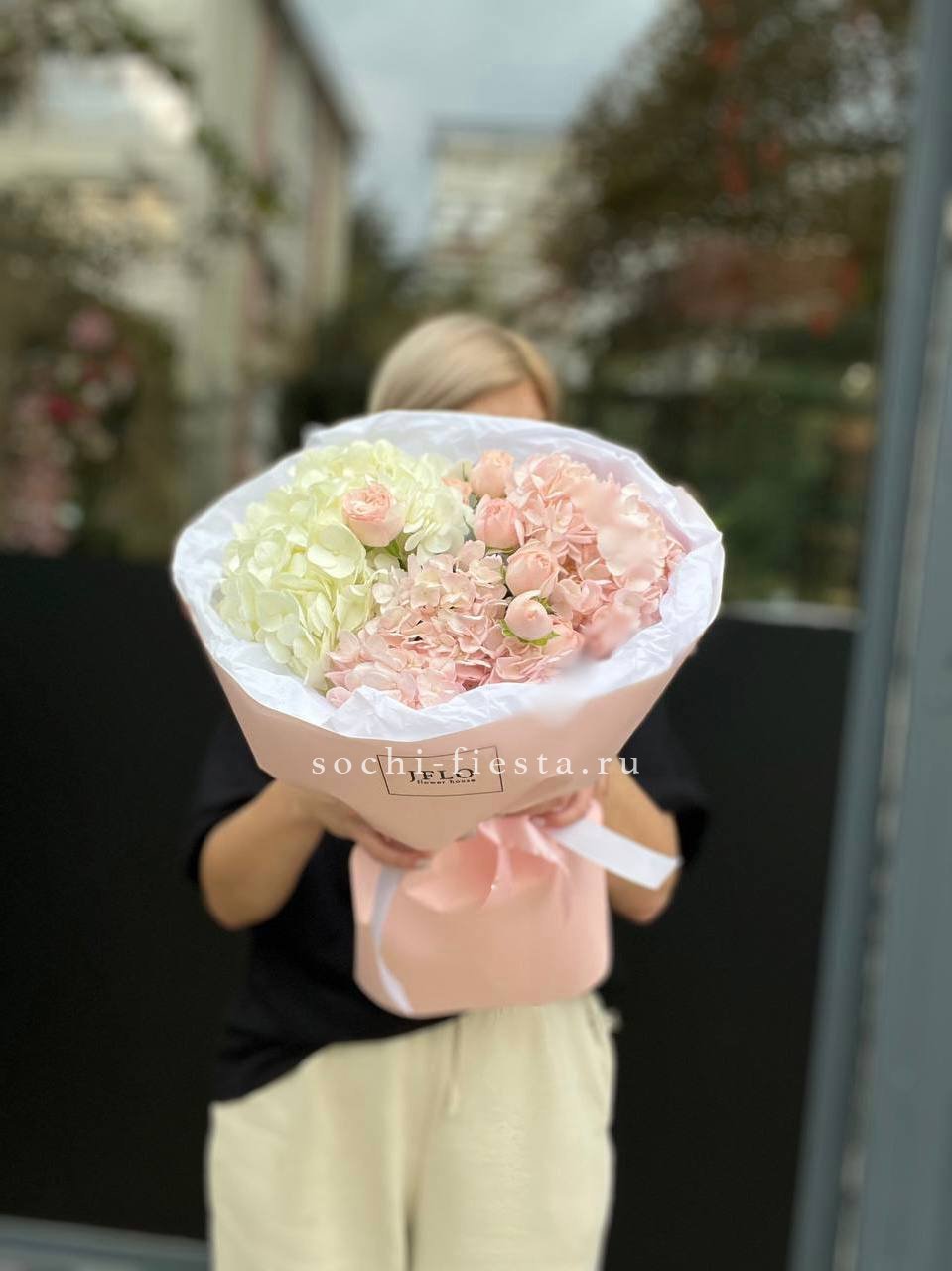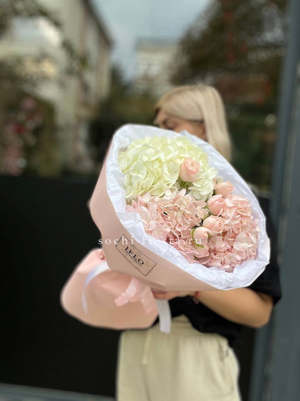 Для заказа товара "Букет с гортензией "Адель"" с доставкой в Подольске нажмите в корзину