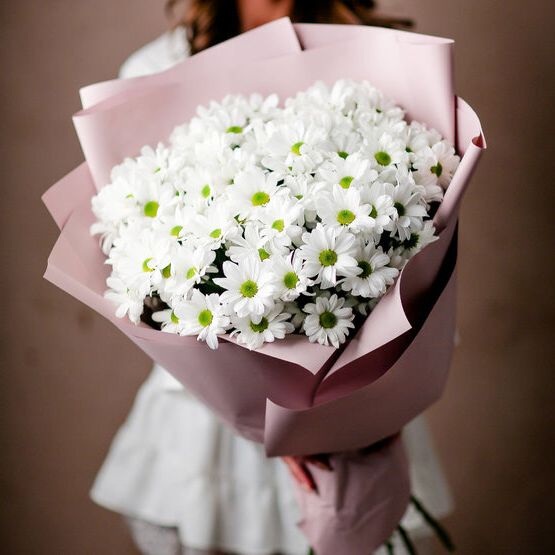 Букет хризантем в крафте