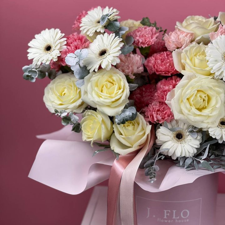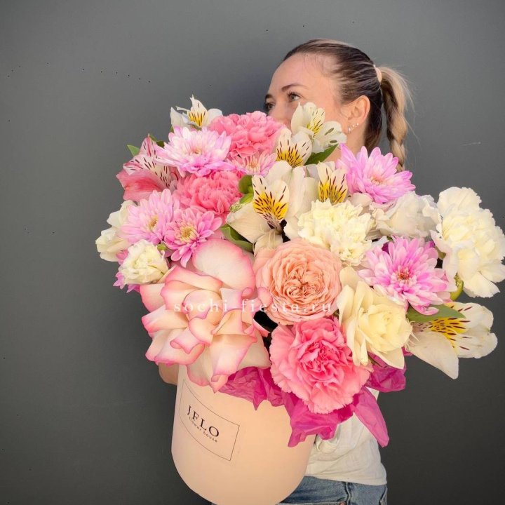 Шляпная коробка в студии Подольске — практичный формат подарка для офиса, семейного юбилея, свадьбы. Композиция с флористической губкой, не требующая вазы, готовая к дарению сразу после получения. Это удобно и для отправителя, и для адресата.