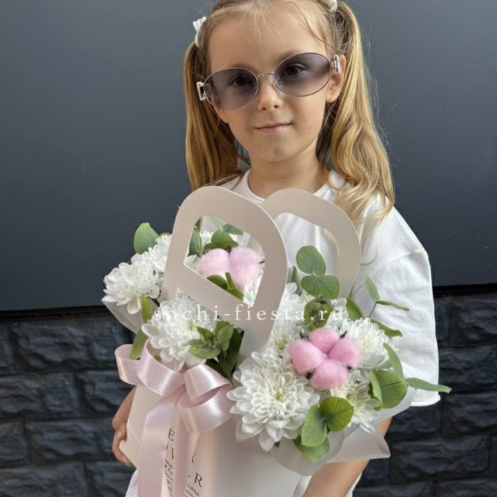 Размер выбирается по повод. Коллеге в Подольске — M или L. Юбилей родителей — XL. Выписка из роддома — L в пудровой палитре. Свадебный подарок — XL. 1 сентября — M или L в классической палитре.