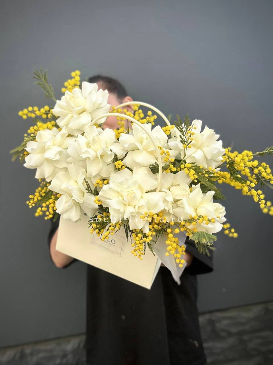мимоза, французские розы, сумочка, оазис.