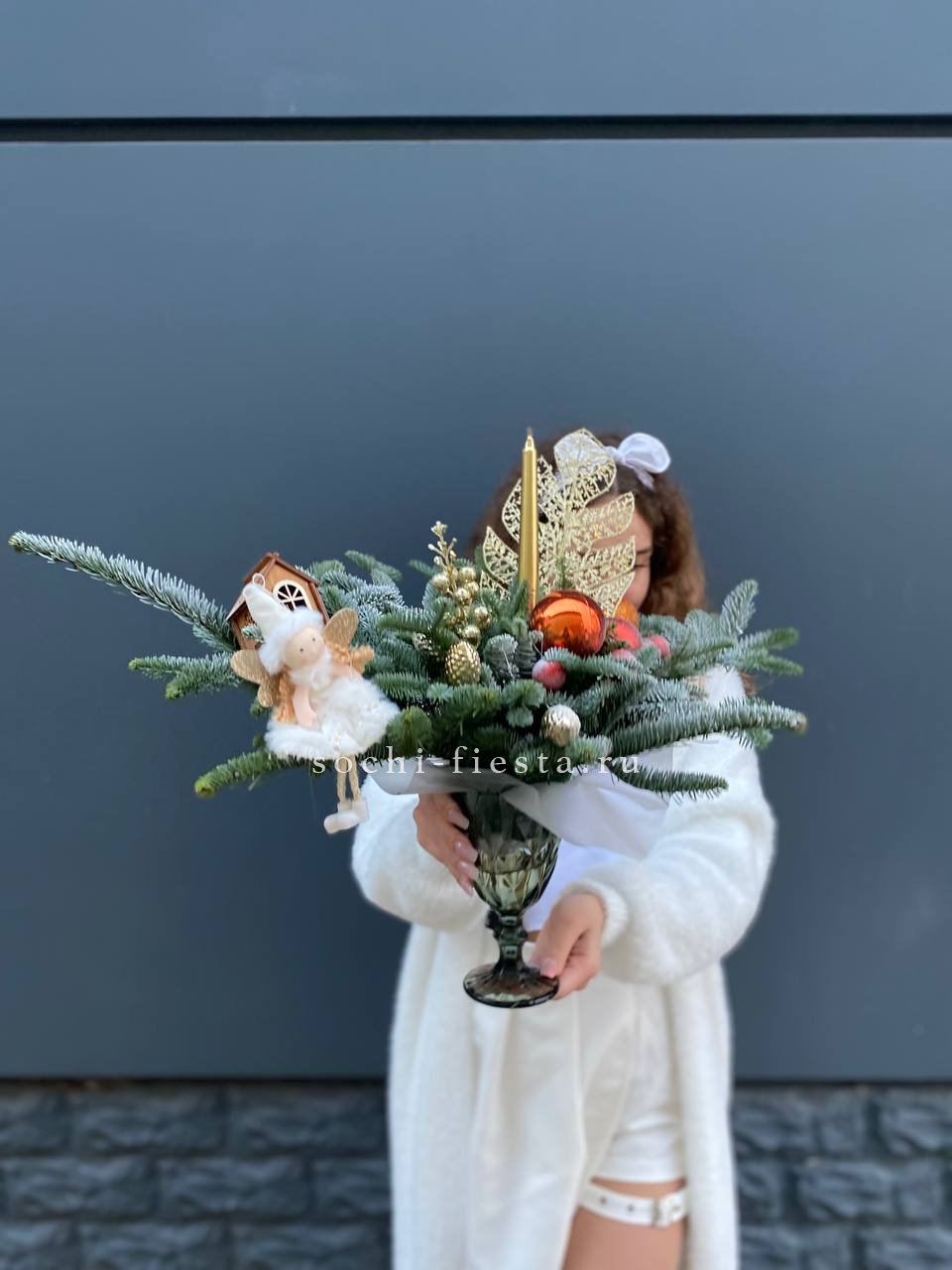 нобилис, бокал, оазис, свечи, новогодние игрушки, декор ВНИМАНИЕ! Готовая композиция (декор) может иметь незначительные внешние отличия от примера на фотографии.