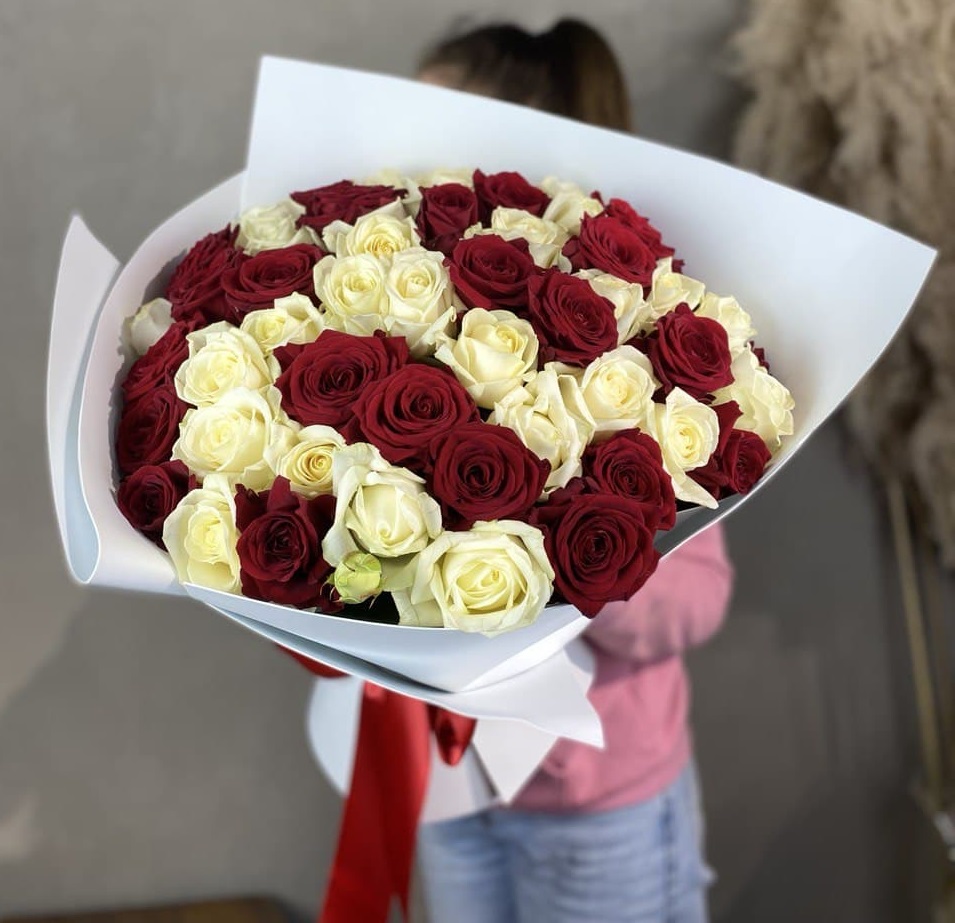 Букет из красных белых 15 роз