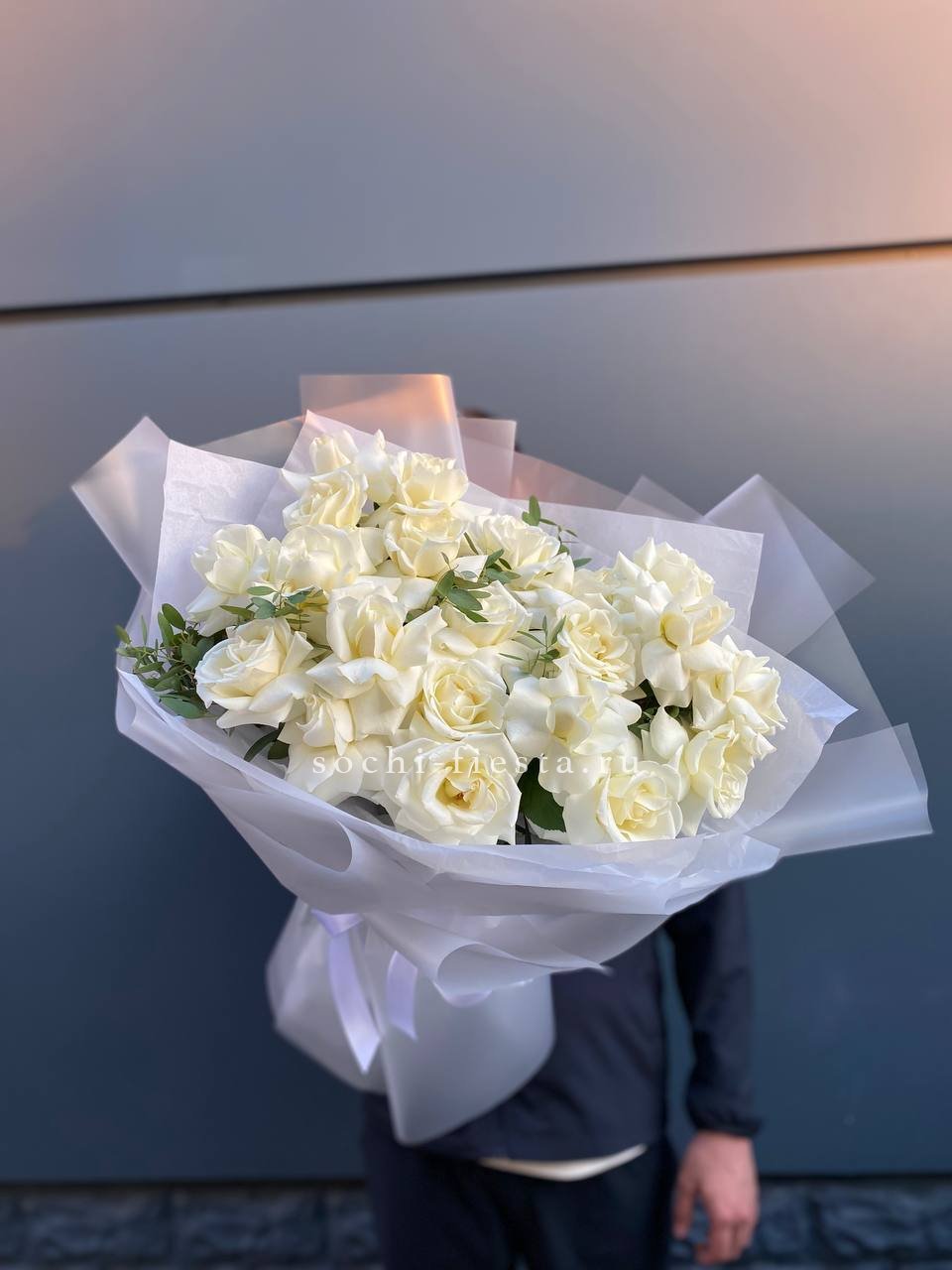 Пышный букет из белых роз