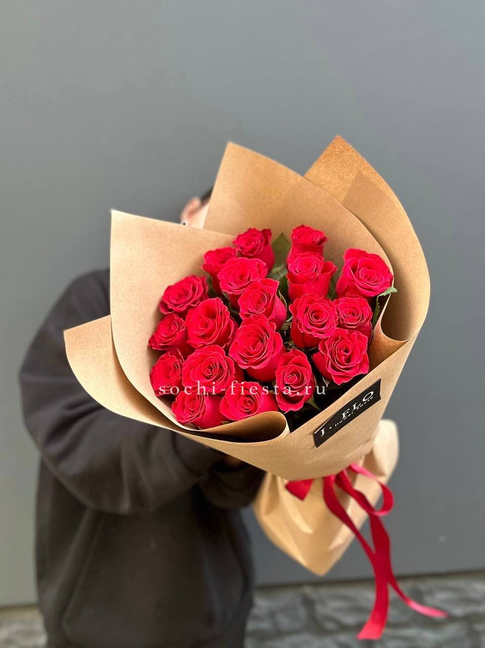 19 красных роз в крафте