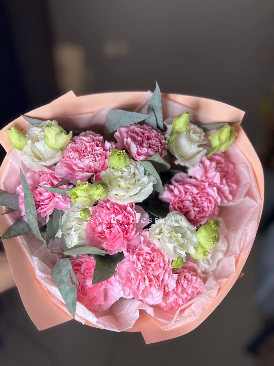 Для заказа товара "Букет гвоздик и эустом "Сири"" с доставкой в Подольске нажмите в корзину