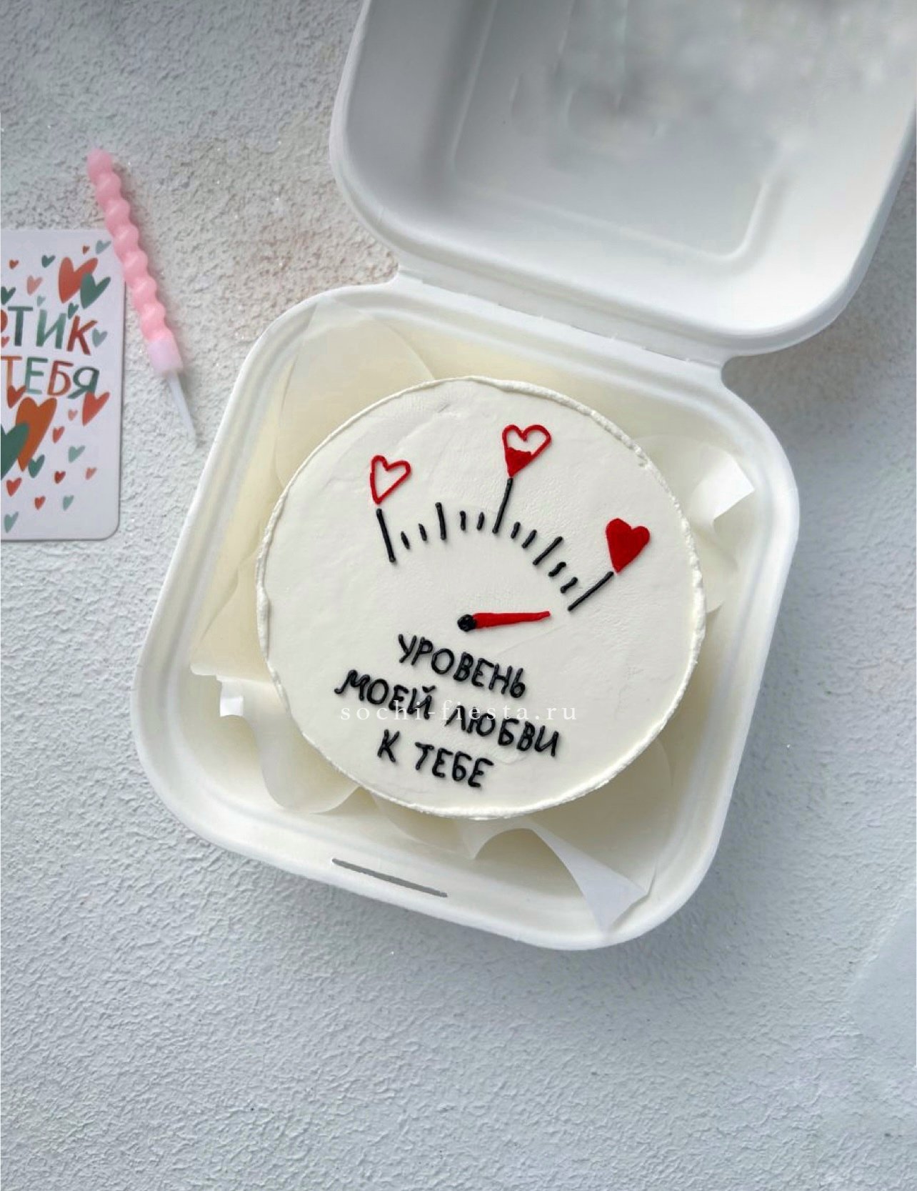 Дизайнерский бенто-торт ручной работы с авторским оформлением и романтичной надписью. Компактная форма идеальна для личного поздравления. Доступны начинки клубничный пломбир и шоколадный трюфель.